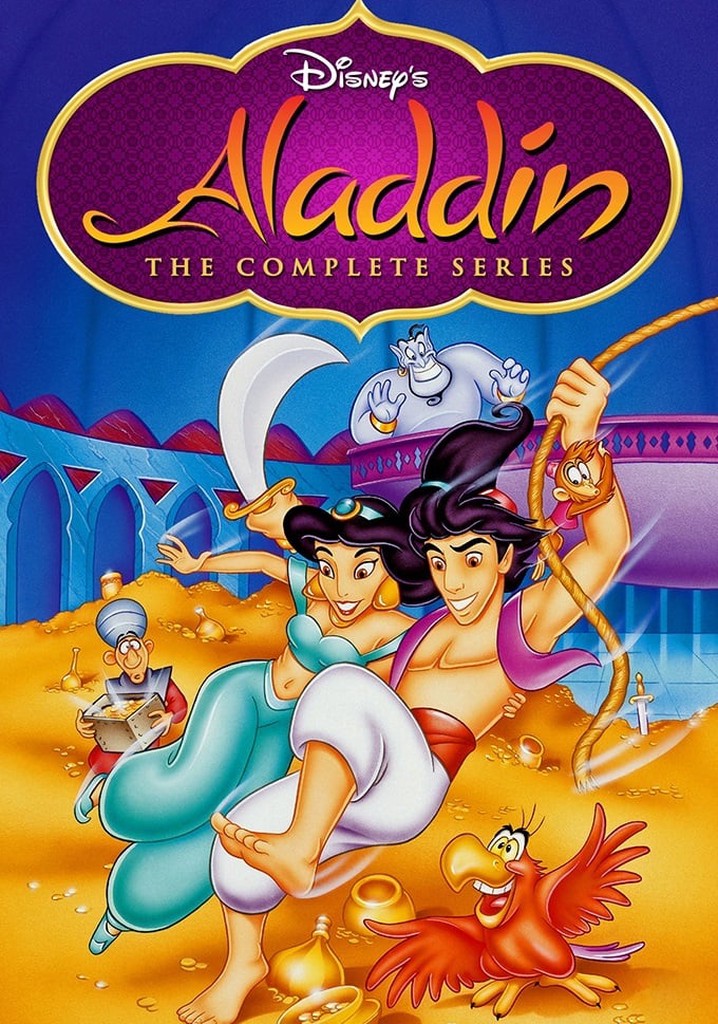 Aladdin is an animated television series made by Walt Disney Television which aired from 1994 to 1995, based on the original 1992 feature. It was animated at the Slightly Offbeat Productions Studios in Penrose, Auckland, New Zealand. Coming on the heels of the direct-to-video sequel The Return of Jafar, the series picked up where that installment left off, with Aladdin now living in the palace, engaged to beautiful and spunky Princess Jasmine. "Al" and Jasmine went together into peril among sorcerers, monsters, thieves, and more. Monkey sidekick Abu, the animated Magic Carpet, and the fast-talking, shape-shifting Genie came along to help, as did sassy, complaining parrot Iago, formerly Jafar’s pet but now an antihero. Jafar, having previously been destroyed in the second movie, returns in only one episode which also serves as a crossover with Hercules: The Animated Series. Many of the films' stars provided the voices of their TV counterparts, with the notable exception of Dan Castellaneta filling in for Robin Williams in the Genie role. Unlike The Little Mermaid spinoff series, this series does not feature any musical numbers. The series originally aired concurrently on the syndicated The Disney Afternoon block and on Saturday mornings on CBS. Disney Channel reran the series in the late-1990s until it was replaced by their pre-teen lineup. The show was later shown on Toon Disney, but has since been removed.